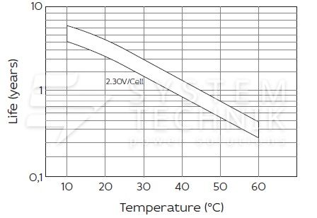 - Срок хранения без подзаряда: 6 мес. при 25°C;