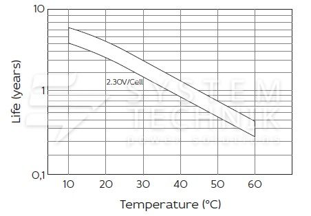 - Срок хранения без подзаряда: 6 мес. при 25°C;