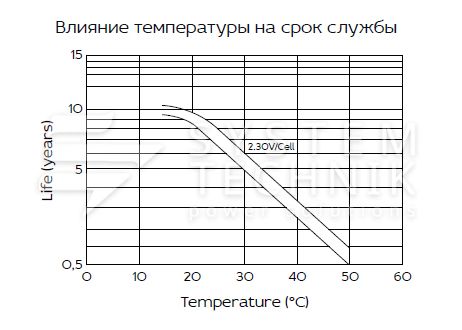 - Срок хранения без подзаряда: 6 мес. при 25°C;