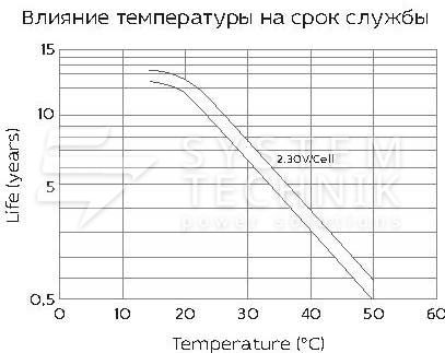 - Срок хранения без подзаряда: 6 мес. при 25°C;