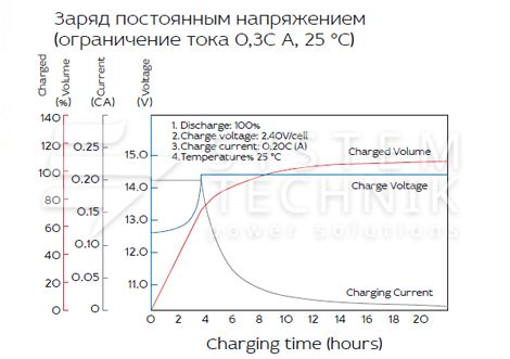 - Срок хранения без подзаряда: 6 мес. при 25°C;