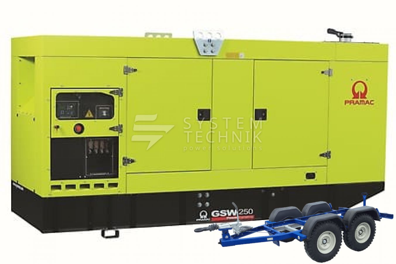 - Дизельный генератор Pramac GSW 250 P 400V (Alt. LS) В кожухе на прицепе