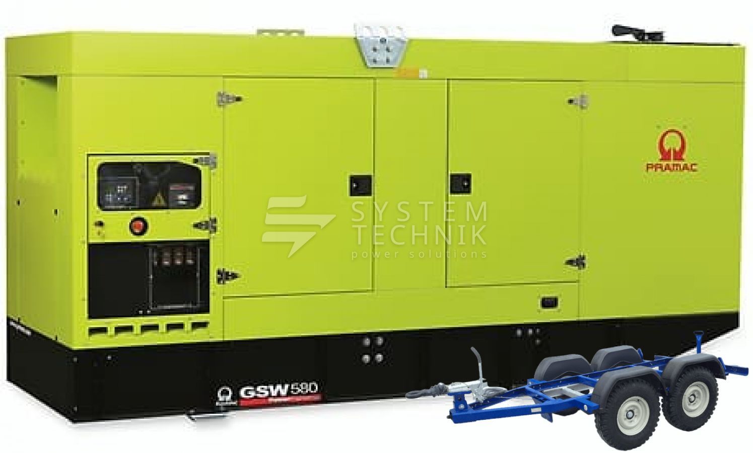- Дизельный генератор Pramac GSW 580 DO 230V 3Ф В кожухе на прицепе