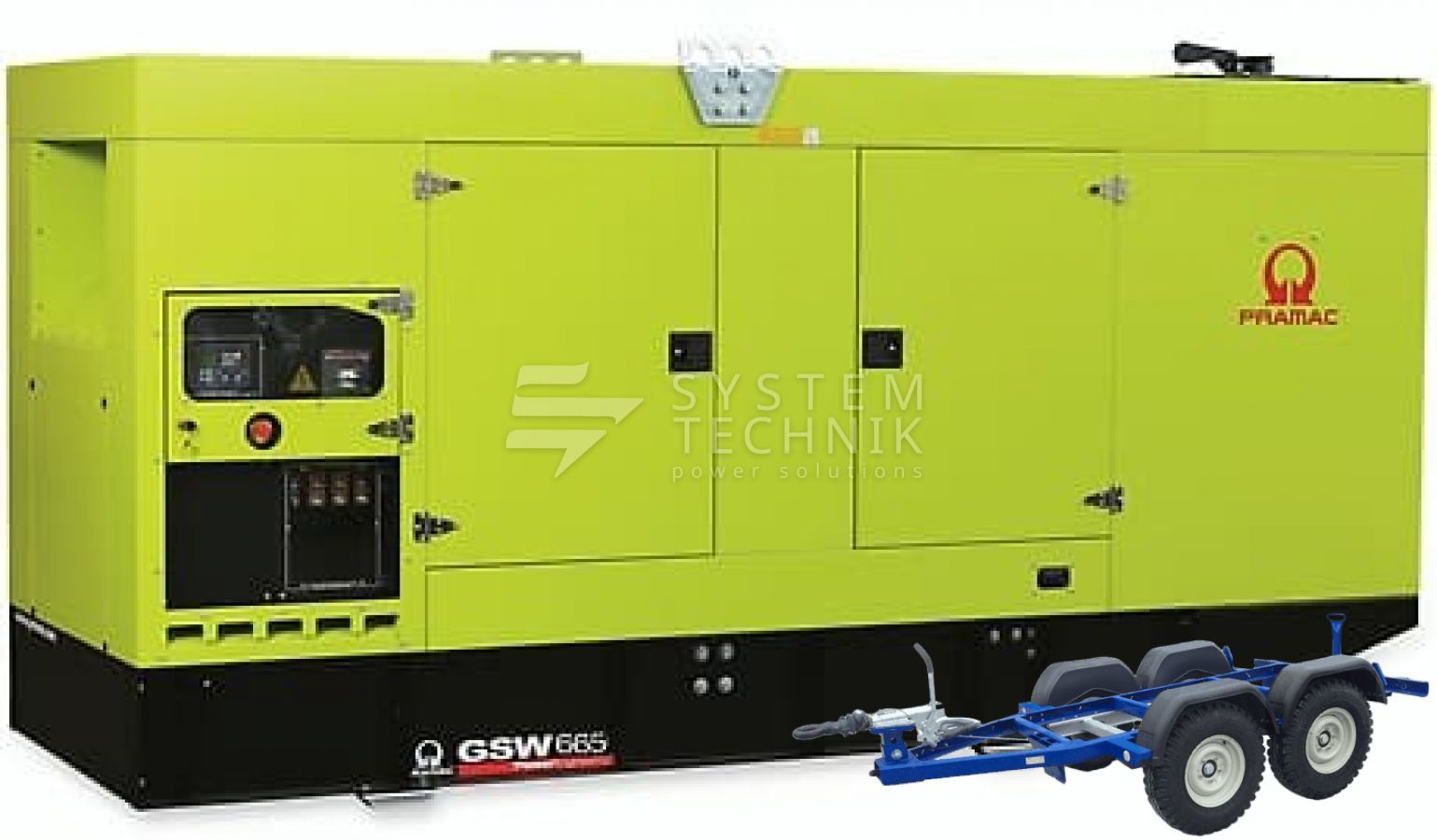 - Дизельный генератор Pramac GSW 665 I 400V В кожухе на прицепе